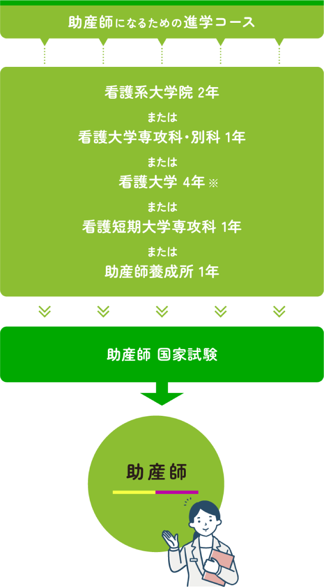 ※助産師の教育プログラムがある大学では、看護師に加えて助産師の国家試験受験資格を得ることができます。